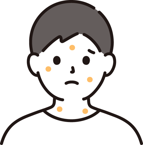 また、重症な薬疹として、スティブン・ジョンソン症候群や薬剤性表皮壊死症、ウイルスによる薬剤性過敏症候群などがあります。発熱や倦怠感を伴う皮膚障害として現れます。